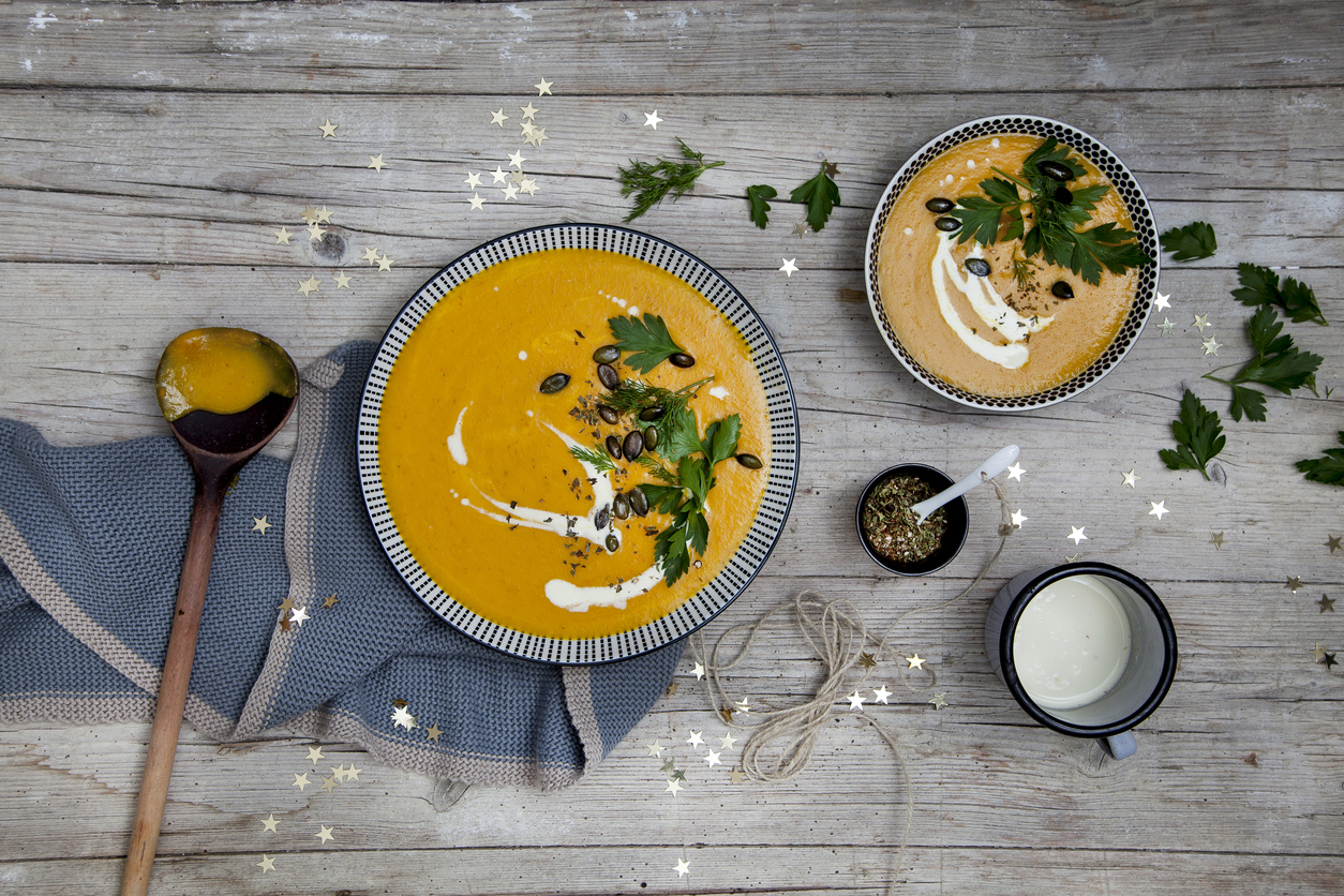 Sopa de calabaza confitera con castañas