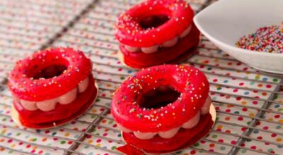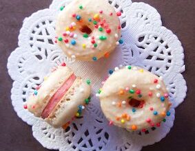Estos dulces, que pueden ser pequeños como un macaron o del tamaño aproximado de un dónut, nos conquistan por sus colores y su gran variedad. La clave está en una masa hecha de almendra y un relleno cremoso, como la propia del típico dulce frances y, por supuesto, la característica forma de dónut con un agujero en el centro.
