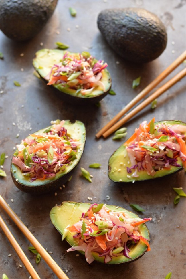 Aguacates rellenos de col al estilo asiático