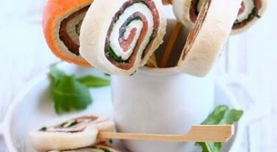 En una fuente, mezcla el queso crema con leche hasta que no queden grumos, añade el eneldo y la pimienta, y vuelve a remover muy bien todo. A continuación, añade la cebolla troceada y unta los wraps con la salsa de queso crema. Utiliza 2 lonchas de salmón por wrap, salpimienta y enrolla los wraps. Córtalos por la mitad y colócalos de pie en el plato.