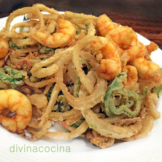 Para empezar, te contamos cómo elaborar la tempura en sí misma, es decir, el rebozado que cubrirá carnes, pescados y verduras. Para prepararla necesitamos harina de maíz, un poco de levadura, un huevo batido, agua fría (es imprescindible que el agua esté bien fría y no a temperatura ambiente para lograr la consistencia deseada) y sal. La forma de realizarla es mezclar primero el agua con el huevo y después añadir poco a poco harina hasta obtener una textura más bien espesa. Es imprescindible, además, que utilices la mezcla justo después de haberla hecho y no esperes demasiado tiempo porque si no será complicado conseguir esa textura crujiente pero ligera propia de las tempuras.