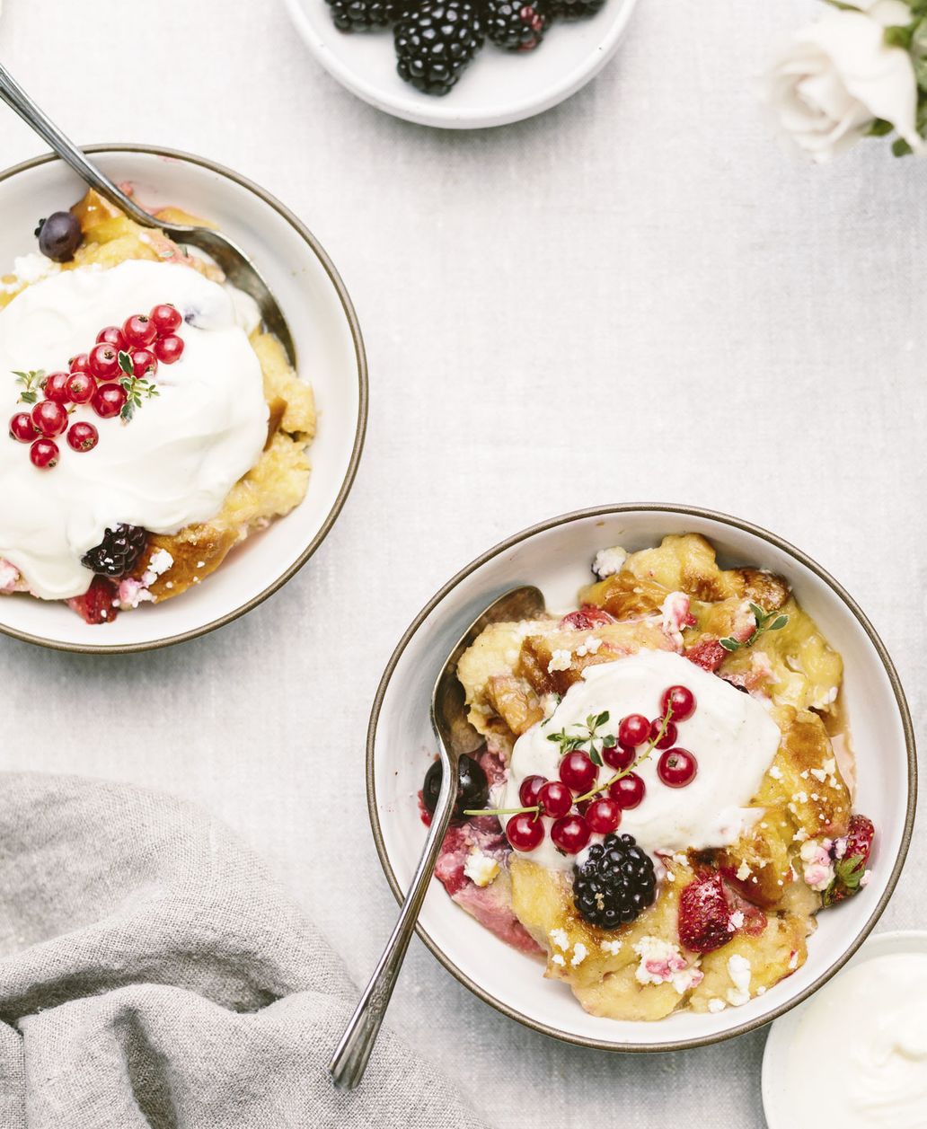 Consejo: Si quieres, puedes espolvorear el pudín de pan con azúcar glas y servirlo con salsa de vainilla. También puedes untar las capas individuales con pasas o trocitos de chocolate.