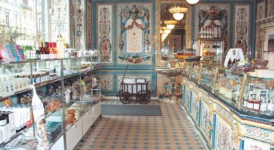 Su increíble decoración nos deja boquiabiertas. Desde los techos hasta el suelo, todo en ella parece recién salido de un cuento: mosaicos y azulejos por todas partes, terminaciones victorianas y modales de lechería del siglo pasado. De hecho, si crees que no es posible entrar en una tienda de dulces y sentirte más atraída por su decoración que por sus productos, este local le da un giro completo a tu perspectiva.
