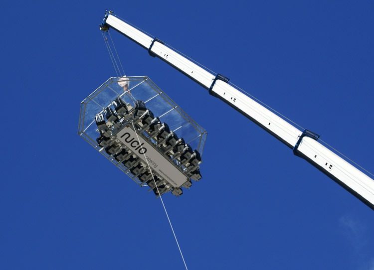 Una grúa sujeta la plataforma donde se sitúa la mesa con capacidad para 22 comensales. Durante la cena seréis atendidos por un cocinero y un camarero e incluso animados por un actor. Lo bueno es que no está emplazado en un sitio fijo y sois vosotros los que podéis decidir las vistas de las que queréis disfrutar durante la velada. ¿Te atreves?