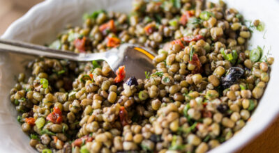 Con un estilo muy griego encontramos esta ensalada de lentejas a la que le añadiremos hortalizas como tomate, pepino o cebollino. El aliño lo haremos con sal y pimienta negra. Hasta aquí todo parece muy sencillo pero, ¿qué te parece si incorporamos las aceitunas negras en esta receta? Puede ser simplemente troceándolas e incorporando aceite de oliva en el aliño o, para obtener un resultado más sabroso, ¿por qué no preparas una olivada con ellas como ingrediente principal? ¡El resultado es delicioso!