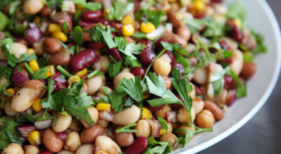 Aquí sí: abstenerse lo haters del cilantro. Y es que con esta especia solo pueden ocurrir dos cosas: que te encante o que la odies. Si eres de las primeras te va a encantar esta ensalada que combina alubias blancas y pintas. Además, puedes incorporarle máiz dulce que le aporte color y, por supuesto, cilantro previamente machacado en un mortero junto al ajo en polvo, sal y aceite. Será este el aliño contundente de esta ensalada.
