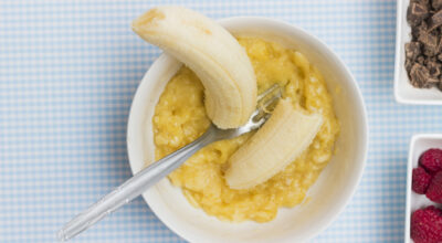 Los amantes del pan o bizcocho de plátano está familiarizados con este puré. El plátano machacado aporta un dulzor y una textura muy interesante a los postres. También se puede utilizar en el desayuno para endulzar una papilla de avena. Contiene fibra y potasio.
