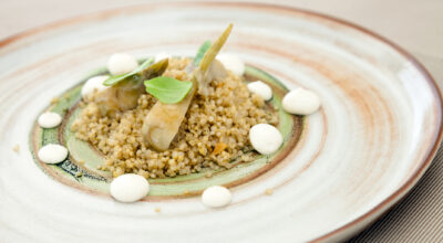 - Merluza con salsa verde y quinoa