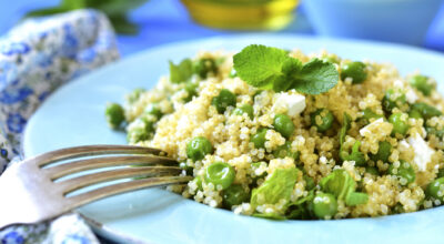 Puedes utilizar la quinoa como sustitutivo del arroz. Saltea los guisantes con un poco de aceite y ajo. Después agrega unas hojas de menta y la quinoa y añade lo más importante: queso feta. Un plato que se puede tomar tanto frío como caliente.