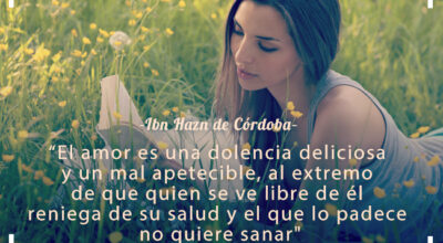 "El amor es una dolencia deliciosa y un mal apetecible, al extremo de que quien se ve libre de él reniega de su salud y el que lo padece no quiere sanar". Ibn Hazm de Córdoba