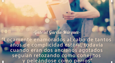 “Locamente enamorados al cabo de tantos años de complicidad estéril, todavía cuando eran dos ancianos agotados seguían retozando como conejitos y peleándose como perros”. Gabriel García Márquez