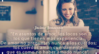 “En asuntos de amor, los locos son los que tienen más experiencia. De amor no preguntes nunca a los cuerdos; los cuerdos aman cuerdamente, que es como no haber amado nunca”. Jacinto Benavente