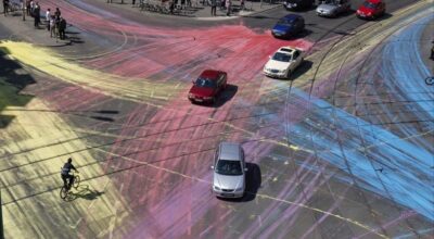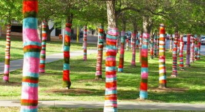 Postes de la luz que se tiñen de color, cabinas telefónicas que nos hacen sentir como en un submarino o líneas de frenado de los automóviles que simulan arcoíris en un concurrido cruce entre varias calles. Las alcantarillas pueden adquirir cualquier forma y tener, incluso, rostros humanos. También hay ciudades en las que se abrigan los árboles y las farolas y otras en las que paraguas voladores nos resguardan del calor. En definitiva, arte a la medida de los tiempos modernos y con capacidad de desbordar las salas de los museos.