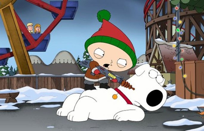 Padre de familia, que nos rompió el corazón hace no mucho cuando sus guionistas decidieron matar a uno de sus personajes principales (el perro Brian, en la foto), también ha tenido algunos especiales navideños divertidos pero, cómo no, irreverentes y políticamente incorrectos. En el especial de hace dos años, precisamente, los guionistas resucitaron a Brian por un día.