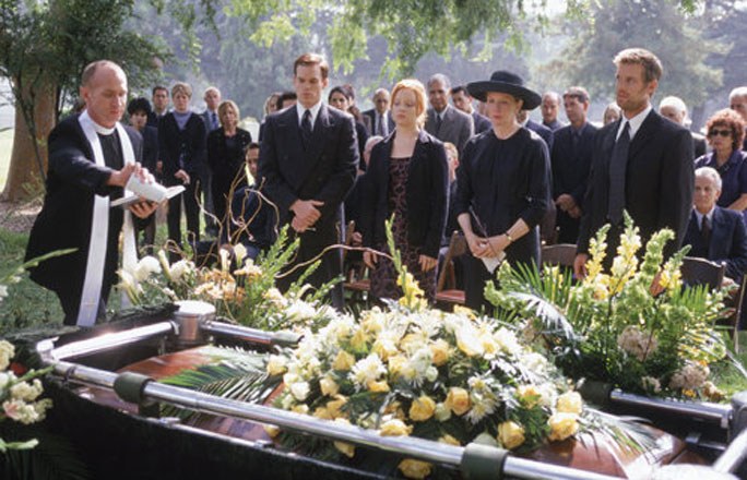 Ese hecho hace que se reúna toda la familia para enterrarle y para decidir qué hacer con el negocio funerario, mientras se van destapando las desquiciadas y extravagantes personalidades de los protagonistas. Ruth, la madre, teniendo una aventura con un peluquero; David, el hijo mediano, con problemas para aceptarse y salir del armario; o Claire, la hermana pequeña, llegando drogada al funeral. Un episodio brillante con un guión perfecto al que le sucederían muchos más.