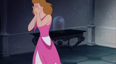 © Cenicienta. Cuando las hermanastras de Cenicienta le destrozan el vestido y ella llora desconsolada.