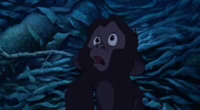 © Tarzán. Cuando Sabor, el leopardo, asesina cruelmente al hijo de Kerchak y Kala.