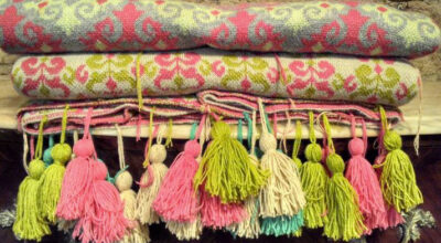 También es muy alegre el estampado floral, además de auténtica tendencia en todos los ámbitos textiles. Además, puedes elegir el detalle de añadir pequeñas bolitas, flecos o pompones, está a la orden del día.3. Manta sobre manta y sobre manta una