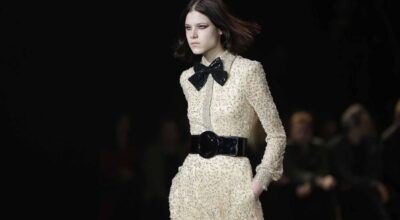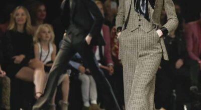 Durante el desfile hemos podido ver la colección de hombre al completo y la primera parte de la colección femenina. Modelos con looks noventeros, andróginos y con botines metalizados. Los looks femeninos eran más setenteros de lo normal, inspirados en los archivos de Rive Gauche. Camisas con lazo, faldas midi, kaftanes y pantalones culotte. Por supuesto, no faltaron los pantalones pitillo, las blazers de terciopelo y las cazadoras biker en piel.