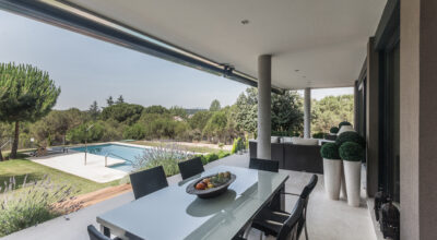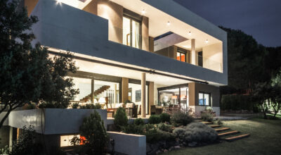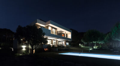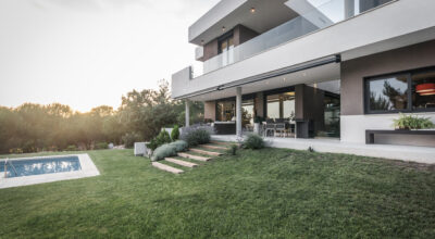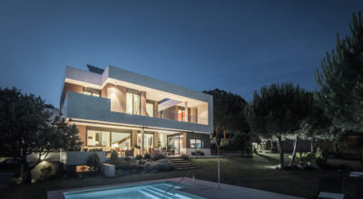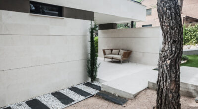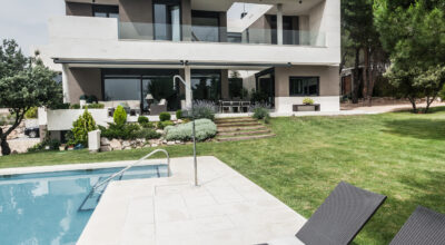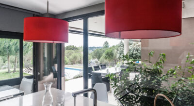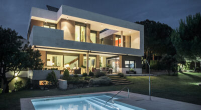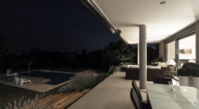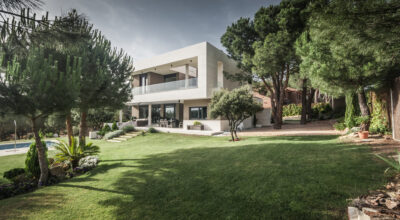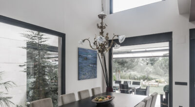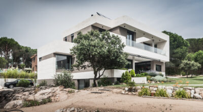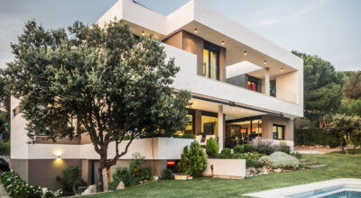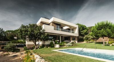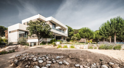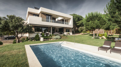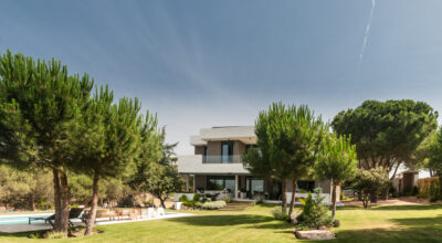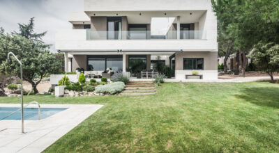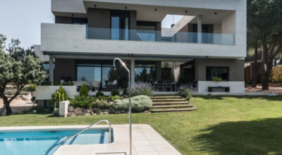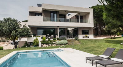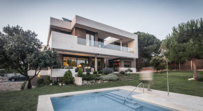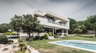 Situada en la zona noroeste de Madrid, en Galapagar, se encuentra esta impresionante casa de 500m2, construida sobre una parcela de 2000m2. Se ha diseñado persiguiendo el máximo disfrute del jardín, incluso desde el interior, y permitiendo que la luz inunde toda la casa. Multitud de terrazas y porches hacen posible que la naturaleza esté casi en contacto permanente con sus inquilinos, algo muy importante cuando hablamos de descanso y relajación. ¿Quién no se imagina tomando el sol en el amplio jardín o dándose un baño en su piscina?