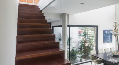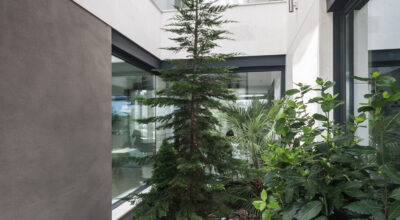 Como antes os decíamos, la naturaleza toma gran relevancia, tanto, que las tres plantas se sitúan alrededor de un patio que une la casa con el jardín. Como si se tratara de un patio andaluz, consigue que haya vegetación incluso en el interior de la vivienda.