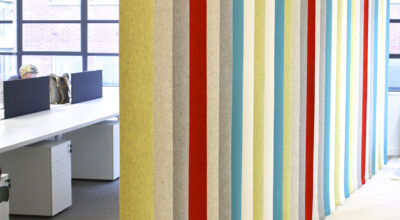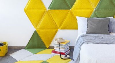 En la imagen que te mostramos más arriba se ha empleado esta tela para elaborar un pequeño mural para hacer las veces de cabecero de cama y una alfombra a juego, pero si te fijas, está integrado en un ambiente en tonos blancos y grises, de manera que no resulta abrumador. Echa un vistazo a estas otras ideas para introducir el fieltro en tu decoración.
