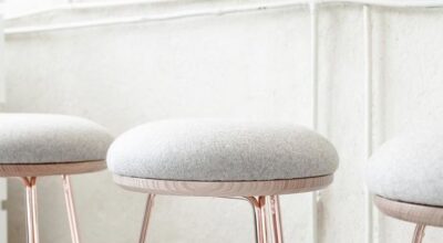 Uno de los elementos en el que más se ha introducido el fieltro es en los tapices de las sillas y los taburetes. Como vemos en estas ideas, se trata de un toque que encaja a la perfección con estilo nórdico o romántico. Queda especialmente bien para emplearlo en la silla del despacho o en el comedor.