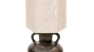 La interiorista Sandra Marcos apuesta por el estilo Mid Century para las lámparas de techo del dormitorio principal, “ya que, junto a los tonos dorados y metálicos, aportan un toque de glamour y elegancia”. Pero para las mesitas de noche o el vestidor, esta pareja de lámparas de base cerámica artesanal y pantallas de lino son la mejor opción.