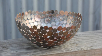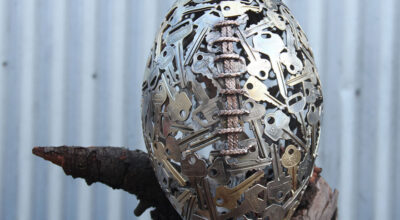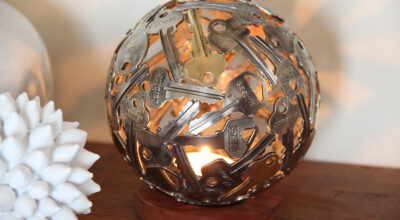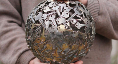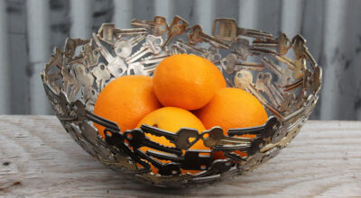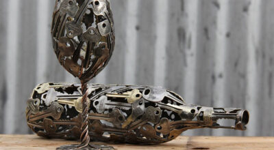 Moerkey (también conocido como Michael) es un artista australiano que se dedica a convertir las llaves y monedas obras de arte reciclado. Botellas, lámparas o fruteros son algunos de los objetos que realiza. «Cuando se supone que debía estar limpiando el cobertizo me encontré con una vieja tubería de cobre guardada de una limpieza anterior. La corté en anillos y empecé a hacer esferas», así comenzó la magia para Michael quien hoy tiene su propia tienda online en Etsy y crea esculturas tan originales como éstas: