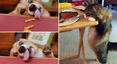 ¡Mi tesoro! 20 mascotas que no pudieron reprimir sus impulsos al ver comida ajena