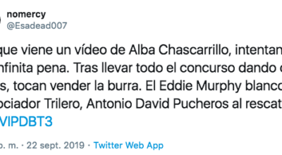 ‘’Toda la razón Alba, que les pongan tuits que les puedan desestabilizar a todos. Es que han sido lamentables, pero vaya, 0 sorpresa de GH’’, ‘’pésimo gusto lo del tuit a Alba Carrillo’’, ‘’dar una información del exterior a Alba está prohibidísimo. Yan han pasado la línea del todo vale, nadie, ¿ningún colaborador va a criticarlo? Ah, no, que cobran de Mediaset’’ o, ‘’me parece vergonzoso que GH intente desestabilizar a una concursante con información del exterior que supuestamente está prohibido. Regañaron a Isabel Pantoja por decirle lo del roneo a Anabel y ahora el mismo programa lo hace con Alba. Patético’’. Como veis, gran parte de la audiencia no estuvo nada de acuerdo en la decisión de la organización que, solo necesitó una persona del público para dar luz verde a su malévolo plan para arruinarle la noche a Alba Carrillo.