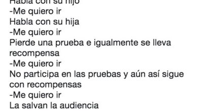 ‘’No te hablo con amenazas…’’ Decía un Carlos Sobera muy subidito mientras intentaba convencer a la Panto por 32454 vez de que se quedara en el concurso y es que, la tonadillera ha tensado tanto la cuerda que al final se ha roto. Después de ser salvada por segunda vez por la audiencia (algo que sus otros 3 compañeros deseaban con todas sus fuerzas), la Panto no tuvo reparos en suplicar de nuevo al Pirata Morgan para que le dejase abandonar la isla. ‘’He pedido al pirata Morgan irme ya, porque necesito estar ya en mi casa con mi gente, con mi madre, porque sus días con ella me pertenecen’’. ¡Valiente dramón se marcó la cantante en pleno directo! Y todo para que, tras una conversación muy calentita con el presentador, tomara la decisión de seguir en la isla. ¿Por qué mareas tanto a la audiencia Isabel, no sabes que al final se van a hartar de tus impertinencias?