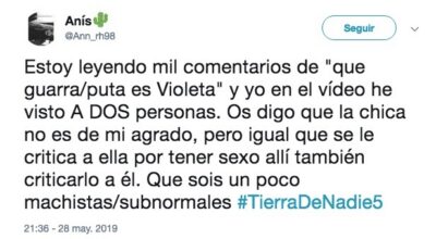 Desde los comentarios más light como ‘’quien quiera ver sexo hay otras plataformas y no se mete en un programa con una audiencia bestial y además de todas las edades. Muy mal Mediaset’’, ‘’Me imagino el jueves a Jorge poniéndonos de vuelta y media diciendo que la audiencia se ha escandalizado con la imagen de los chicos estos, que vaya atraso de mentalidad tenemos, bla, bla…’’, ‘’todos tenemos un punto morboso y nos ha gustado ver a Violeta y a Fabio chuscando pero, ¿es ético grabarlos en un momento tan íntimo?, hasta los más exagerados como ‘’el otro día una mujer se suicidó por el acoso sufrido en el trabajo al pasarse un video sexual suyo, ayer Telecinco compartió un video sexual de dos concursantes con toda España’’.