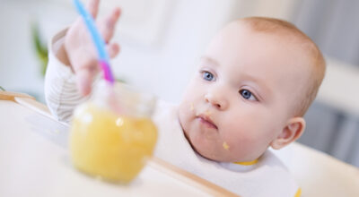 Aunque a partir de los cuatro meses los bebés se empiezan a interesar por la comida de los padres, no debemos confundir su interés en explorar con un deseo de consumir nuestra comida. Lo que les interesa es experimentar nuevas sensaciones. Para ello, es suficiente darles de comer antes y luego sentarles a la mesa con nosotros, no hace falta compartir la comida. Este puede ser un buen método para llevar a cabo prácticas saludables de alimentación infantil como el famoso método Baby-led Weaning.