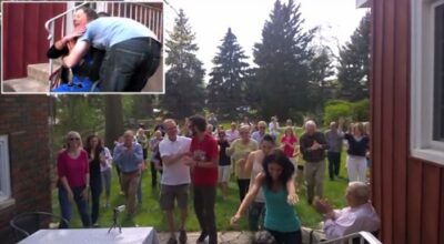 Más de 50 personas, entre amigos y miembros de la familia, se reunieron para sorprender a Amy con este baile tan divertido y así transmitirle todo su amor y fuerza. La alegría en su rostro cuando comienzan a aparecer poco a poco, tanto su familia como sus amigos, de todos los rincones del jardín, es indescriptible. Todos quieren a Amy y le demuestran lo importante que es para sus vidas. Un gesto que nos ha llegado al corazón y nos ha parecido increíblemente hermoso.