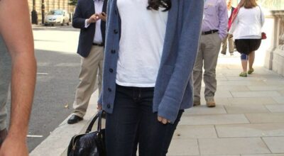 Lana del Rey en Londres con un look muy sencillo, jeans y camiseta básica.