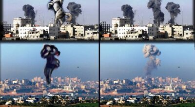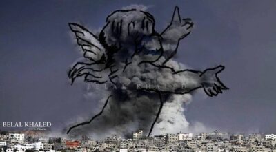 Los tres autores viven en la Franja de Gaza y observan cada día cómo sus compatriotas mueren en esta ofensiva que se ha cobrado ya más de mil víctimas civiles, muchos de ellos niños. Esta reinterpretación de la estela que deja la destrucción, nos habla sobre todo de ellos: de las víctimas inocentes de este conflicto. Vemos colosales rostros y puños que muestran lucha pero también agradables escenas cotidianas de padres e hijos que viven en paz.
