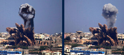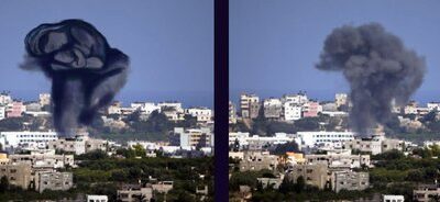 El humo de las explosiones en la Franja de Gaza se convierte en obras artísticas gracias a la mano de tres artistas palestinos. El arquitecto Tawfik Gebreel, la artista Bushra Shanan y el fotógrafo Belal Khaled son los autores de esta iniciativa que pretende concienciar al mundo del sufrimiento del pueblo palestino. No te pierdas estas impactantes imágenes: