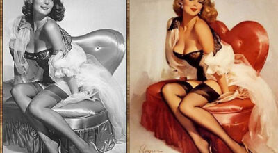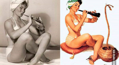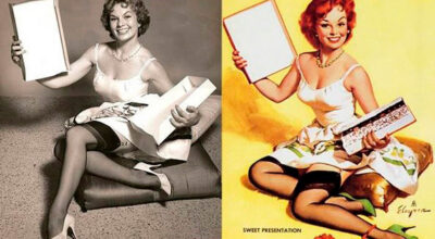 Por aquel entonces no había filtros ni herramientas para licuar o reducir que pudiesen retocar la imagen, pero había artistas. Tomaban como ejemplo los curvilíneos cuerpos de las mujeres de la época y simplemente las dibujaban, añadiendo color ¡nada más!