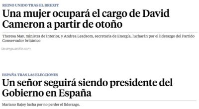 Lo mismo ocurre en política, ¿de verdad era necesario cualificar a las candidatas de los diferentes partidos de «seductoras»? En la noticia, publicada en junio por El Español, se referían además a Patricia Reyes Rivera y Melisa Rodríguez, candidatas de Ciudadanos al Congreso de los Diputados, como «Las dos rubias de ciudadanos». Y seguían en la misma línea: en lugar de ampliar información sobre sus carreras profesionales, se dedicaron a resaltar el bronceado de las candidatas. «De la primera, número tres al Congreso por Madrid, hay que destacar además su tono bronceado de la piel sea cual sea la época del año, lo que hace que cualquier top que se ponga resulte muy favorecedor».