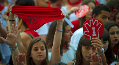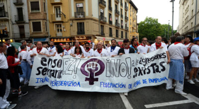 Las fiestas taurinas que se celebran desde la semana pasada en Pamplona se han visto empañadas por las agresiones sexuales a diferentes mujeres. En estos seis días de sanfermines se han producido cuatro violaciones, un intento de violación y siete abusos, según informa la Junta Local de Protección Civil. La primera víctima, de 19 años, sufrió una agresión colectiva por parte de cinco hombres, un guardia civil entre ellos, que además grabaron los abusos con un teléfono móvil. Un acto tan repulsivo e intolerable contra el que se han celebrado manifestaciones de protesta convocadas por colectivos feministas y peñas.