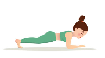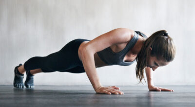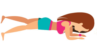 Con este ejercicio se fortalecen los músculos de los brazos y la zona abdominal. Se trata de un entrenamiento de resistencia, no de repeticiones. La posición inicial es desde el suelo, tumbada en una colchoneta boca abajo y debes subir hasta quedarte apoyada en los antebrazos y las puntas de los pies.
