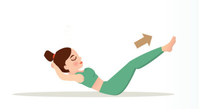 Este ejercicio tiene un nivel más de dificultad, pero nada que no puedas hacer. Lo fundamental es controlar la respiración y llevarla al compás del ejercicio, de manera que cuando subas las piernas inspires, y cuando las bajes expires.