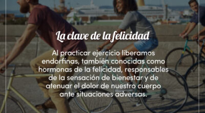 Al practicar ejercicio liberamos endorfinas, también conocidas como hormonas de la felicidad,responsables de la sensación de bienestar y de atenuar el dolor de nuestro cuerpo ante situaciones adversas.