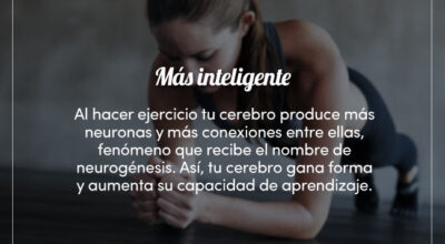 Al hacer ejercicio tu cerebro produce más neuronas y más conexiones entre ellas,fenómeno que recibe el nombre de neurogénesis. Así, tu cerebro gana forma y aumenta su capacidad de aprendizaje.