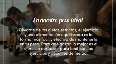 Olvídate de las dietas estrictas, el ejercicio y una alimentación equilibrada es la forma más fácil y efectiva de mantenerte en tu peso. Para adelgazar, lo mejor es el ejercicio aeróbico; para tonificar, los ejercicios y deportes de fuerza.
