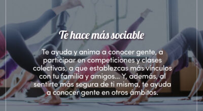 Es indudable: te ayuda a conocer gente, te anima a participar en competiciones y clases colectivas, contribuye a que establezcas más vínculos con tu familia y amigos…Y, además, al sentirte más segura de ti misma, te ayuda a conocer gente en otros ámbitos.