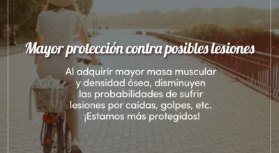 Al adquirir mayor masa muscular y densidad ósea, disminuyen las probabilidades de sufrir lesiones por caídas, golpes, etc.