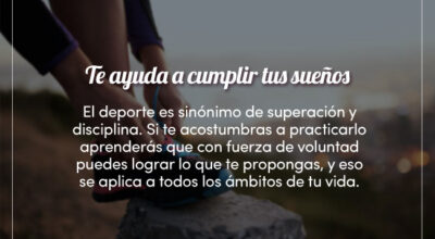 El deporte es sinónimo de superación y disciplina. Si te acostumbras a practicarlo aprenderás que con fuerza de voluntad puedes lograr lo que te propongas, y eso se aplica a todos los ámbitos de tu vida.
