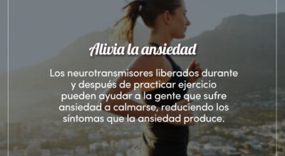 Los neurotransmisores liberados durante y después de practicar ejercicio pueden ayudar a la gente que sufre ansiedad a calmarse, reduciendo los síntomas que la ansiedad produce.